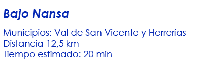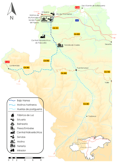 Este itinerario comienza junto a la ría de Tina Menor, en Pesues, tomando la carretera CA-181 dirección Puentenansa. Atraviesa diferentes puntos de especial interés como Muñorrodero, donde da comienzo la Senda Fluvial del Nansa concluyendo en Camijanes. Finalmente en Cades, lugar donde se bifurca esta auto-ruta, se puede seguir por las Huellas de Postguerra o los Molinos Harineros.