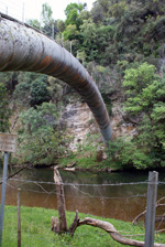 El agua que produce la energía eléctrica en la Central de Trascudia es guiada por un canal de 7 km, que transporta unos 15.000 l/s desde el embalse de Palombera hasta un depósito a cielo descubierto.
