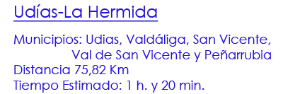 Esta ruta transcurre por el norte de Cantabria occidental, disfrutando en un principio de la marina, por sus playas, acantilados, estuarios,... y, posteriormente, de la montaña por el majestuoso desfiladero de la Hermida del que se quedaron prendados autores como Unamuno o Benito Pérez Galdós.