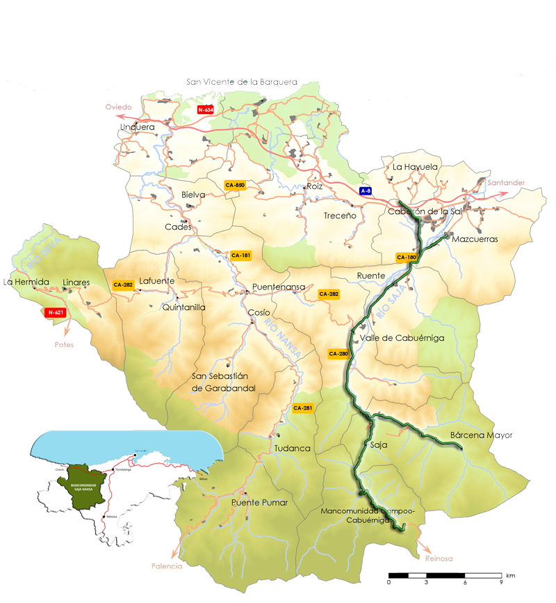 Cabezón de la Sal es el punto de partida de esta ruta por el corazón del valle del Saja, con ella nos adentraremos en un territorio donde la arquitectura tradicional empasta mágicamente con el verdor de los prados y bosques.