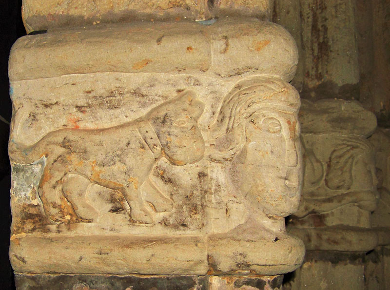 En la nave central del edificio destaca la cornisa de sillería, en la que puntualmente resaltan pequeños canecillos de piedra tallados con motivos geométricos de inspiración románico-gótica. Por su parte, el pórtico se compone de una sola agua fabricada integramente en madera que descansa sobre dos muros laterales y sobre cinco columnas de piedra, dejando la cara sur del atrio completamente abierta.