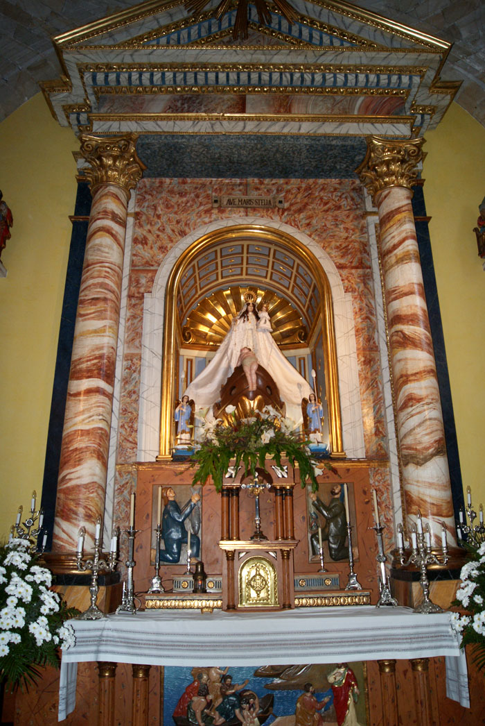 Junto a la entrada de la bahía barquereña se construyó esta ermita, cuyas primeras referencias datan de principios del siglo XV, en el lugar, donde según la leyenda apareció la imagen de la virgen a la deriva en un bote sin vela ni remos. El temor a la mar y a los temporales por muchos marinos, confería un gran apego hacia la virgen, dándole un gran valor simbólico a su ubicación por la cercanía de su peligrosa entrada a puerto, anterior a la construcción del rompeolas de la barra.